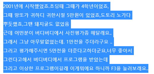 자기를 친구추가 해달라며 속이고 F3을 누르게 만들었죠.