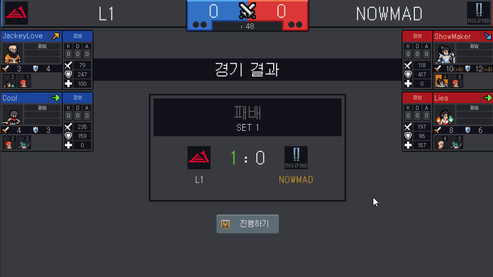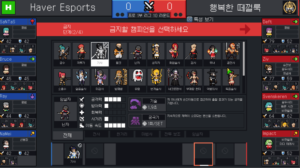 픽밴 단계를 거치고 리그형식의 풀리그를 진행합니다.