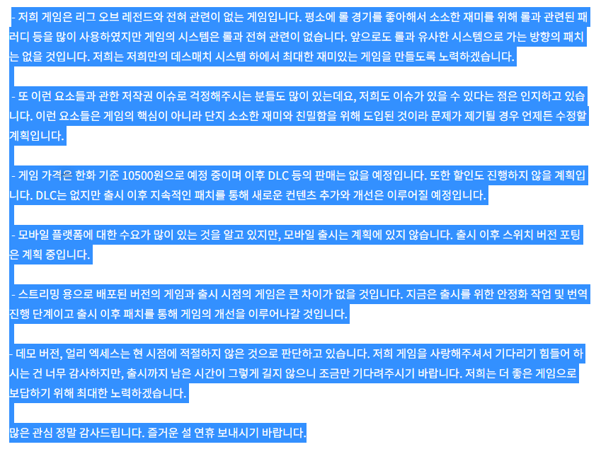 개인적으로 얼리 엑세스를 거치지 않은 선택은 매우 탁월하다 볼 수 있습니다.
