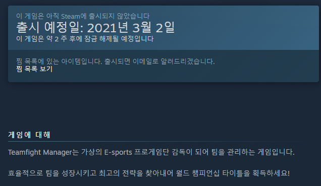 해당 게임은 많은 게임들이 거쳐가는 얼리 엑세스는 하지않고