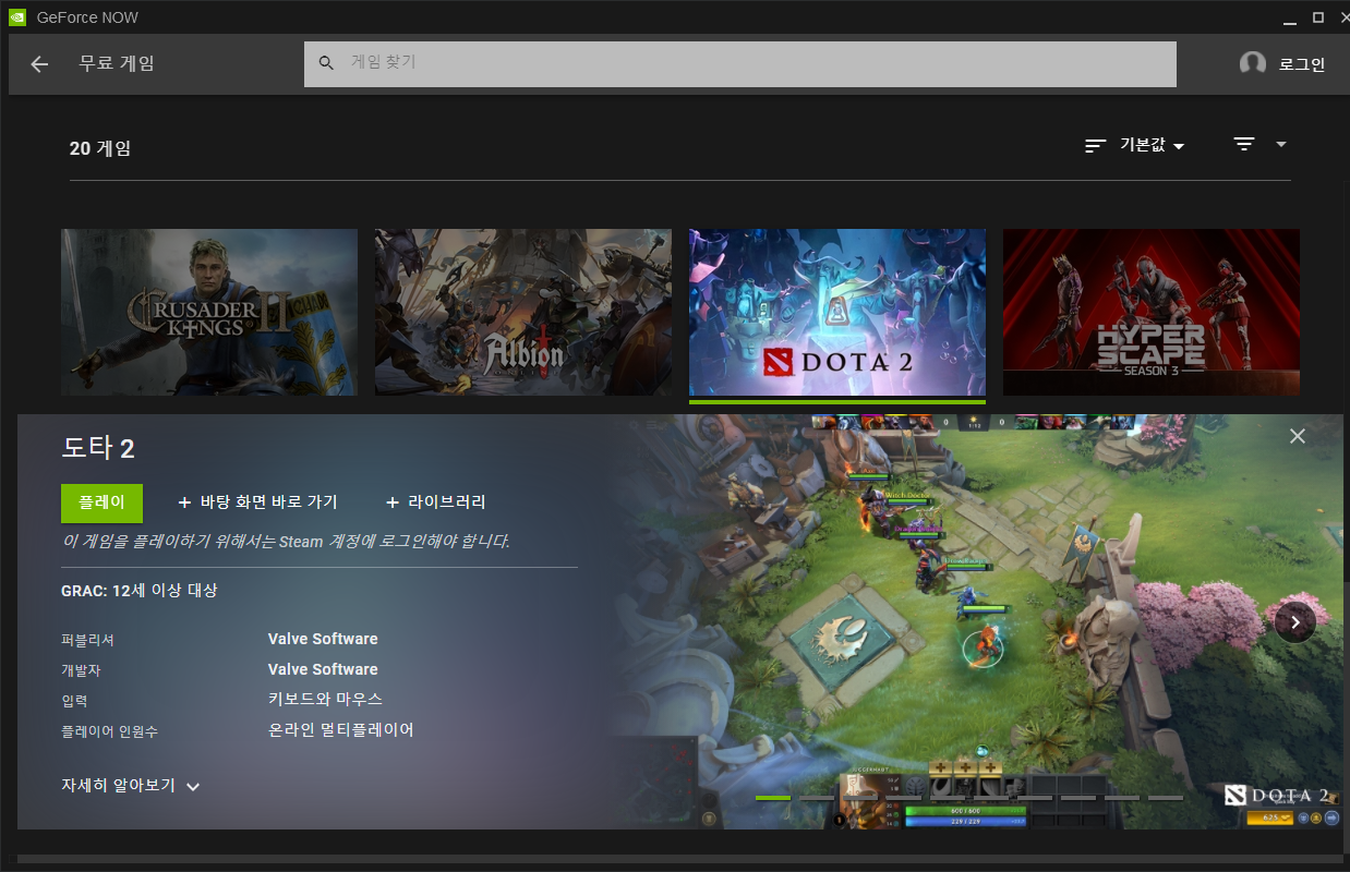 엔비디아에서 배포한 지포스 나우 입니다.