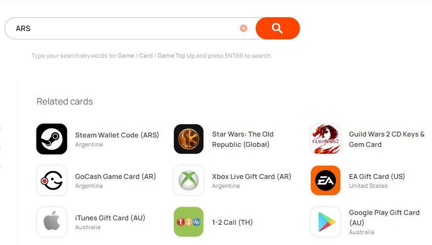 위의 사이트에서 ARS로 검색시 스팀 월렛코드가 나오는데
