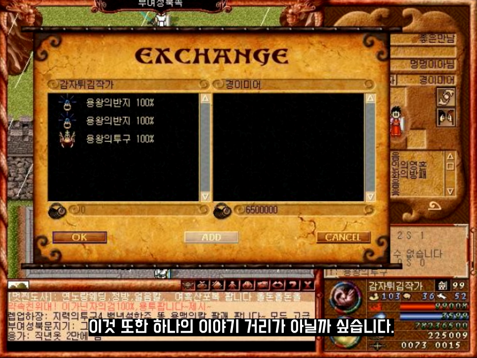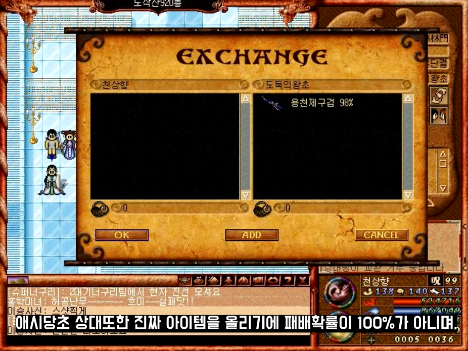 교환창이 처음 생기고 바람의 나라에서 상대방과 교환을할땐