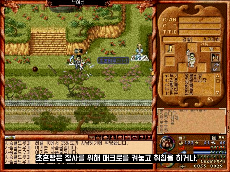 최고의 핫플레이스는 국내성 중앙궁 밑에 있는 초보사냥터였습니다.