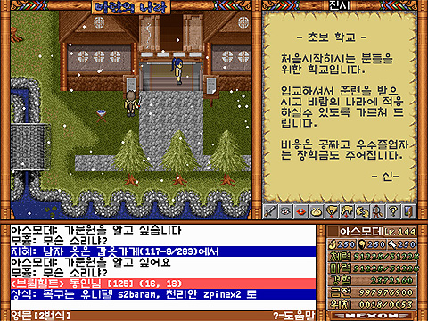 최초의 바람의 나라에는 1998년 6월 3.0버전이 나오기전까지 초보자 학교란 곳이 있었습니다.