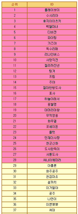 다음은 그 옛날 2차승급시절 슈퍼스타들의 순위리스트와 모습들을 모아봤습니다.