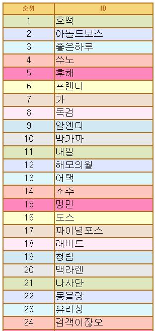 다음은 그 옛날 2차승급시절 슈퍼스타들의 순위리스트와 모습들을 모아봤습니다.