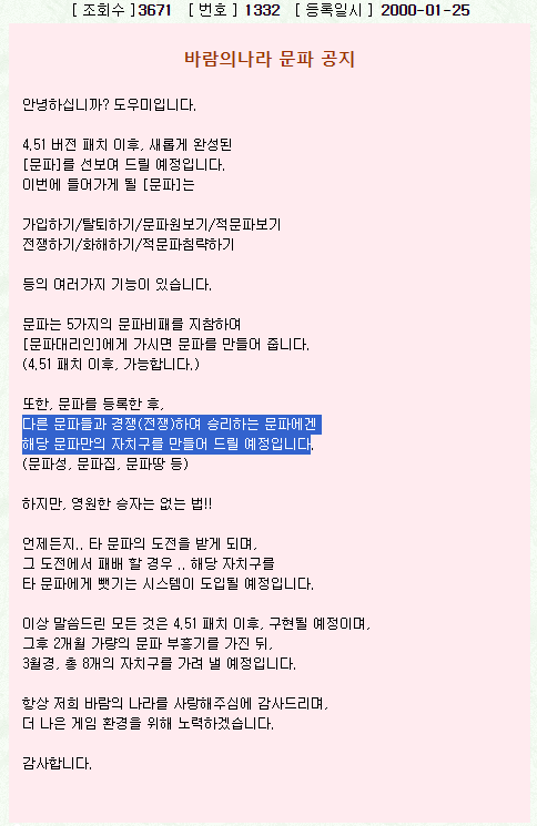 오늘 제가 해드릴 이야기는 구버전 바람의 나라에서.