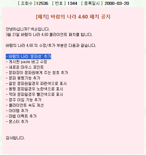 4.6버전에서 2000년 3월 20일 본 서버에 업데이트 되었습니다.