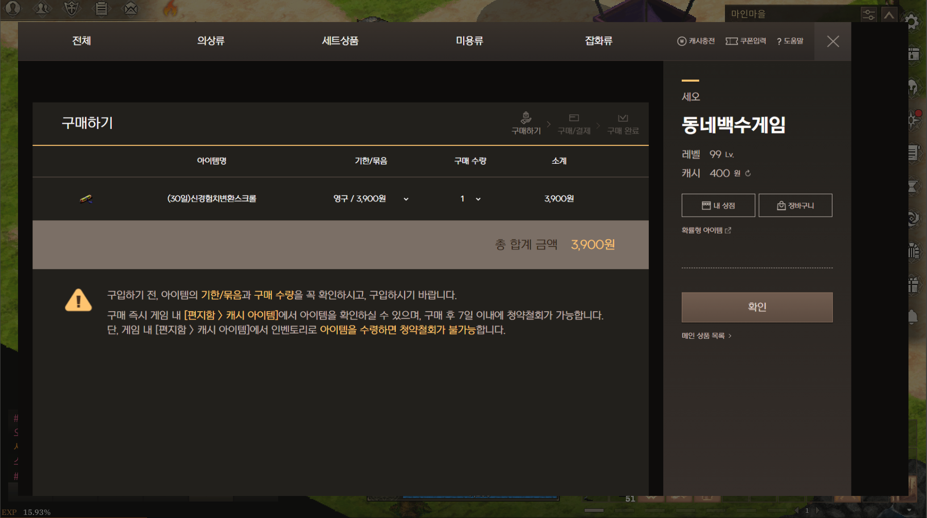 심지어 현금이에요. 경험치를 파는데 현금을 내야 돼, 미친거 아냐?