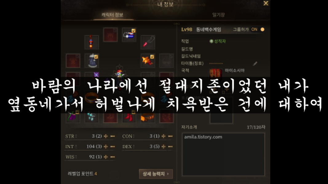 정말 재밌었고, 사냥 내내 이 게임은 바람의 나라의 영향을