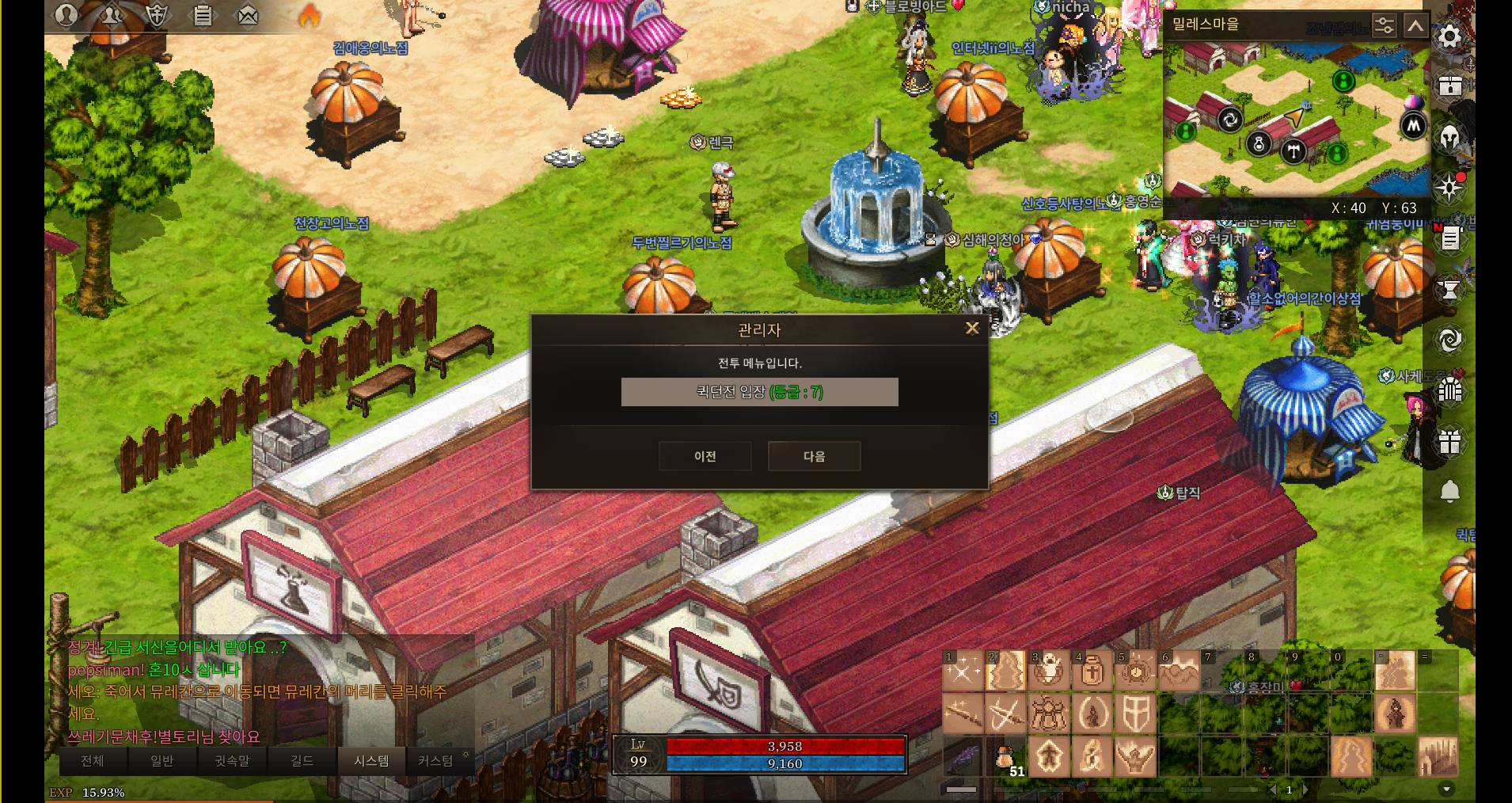 옛날 바람의 나라로 치면 가장 활발히 사냥을 해야하고