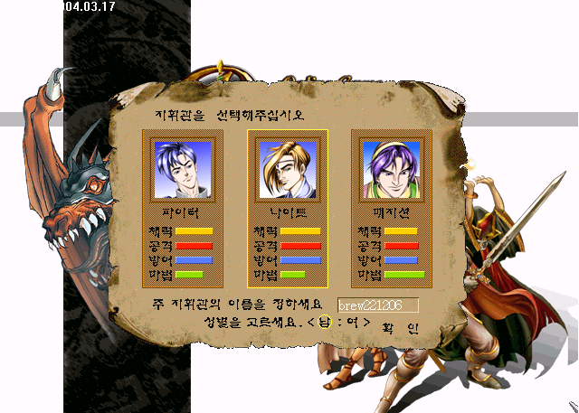 파이터, 나이트, 매지션 3개의 병과 중 택1을 하여 플레이 하게되지만
