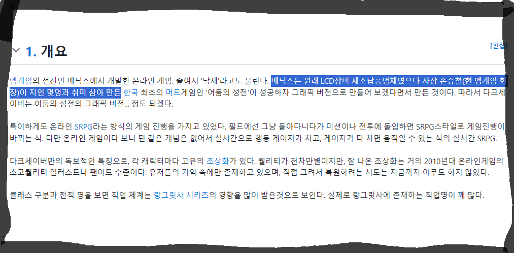 위즈게이트는 사명을 엠게임으로 바꾼 뒤, 닥세월드로 새로운 다크세이버 서버를 오픈하게 됩니다.