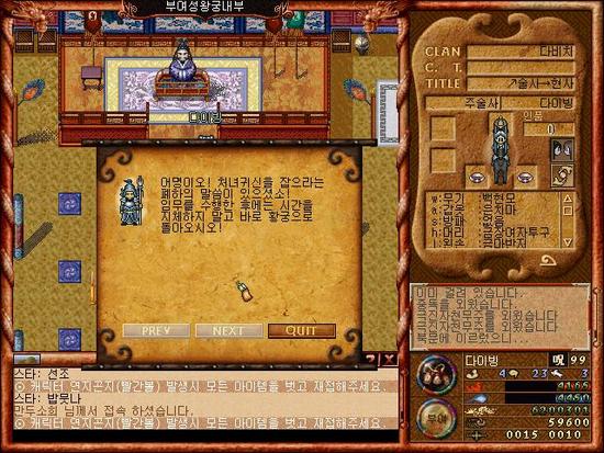 왕퀘는 국내성과 부여성 중앙궁에 위치한 왕이 몬스터를 잡아 오라는 퀘스트를 주는데,